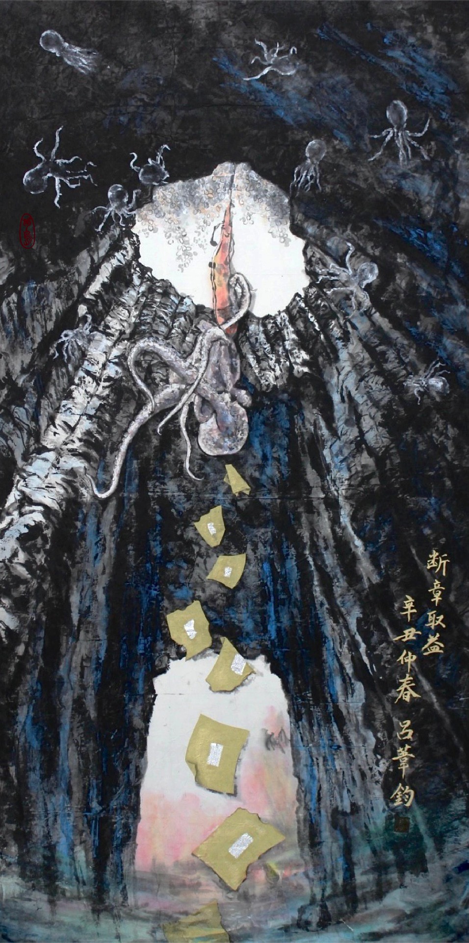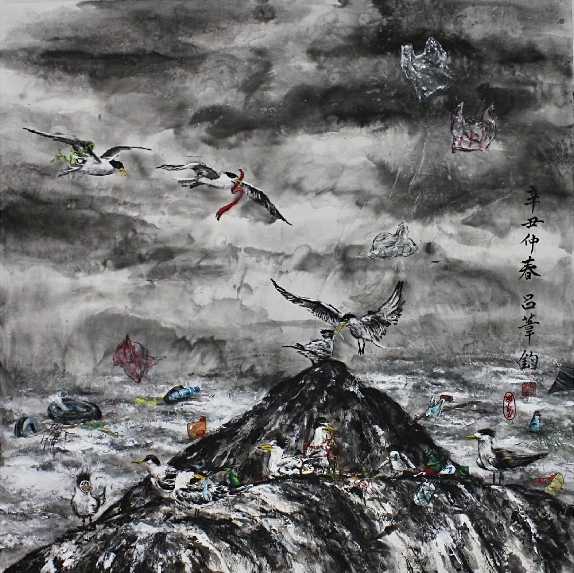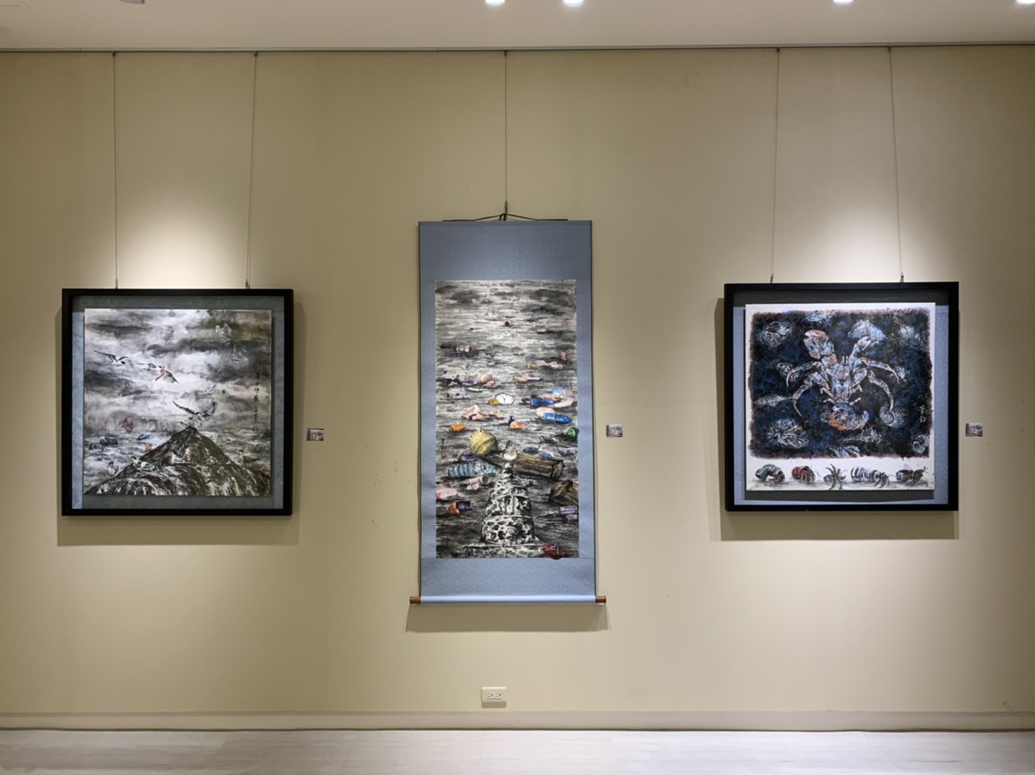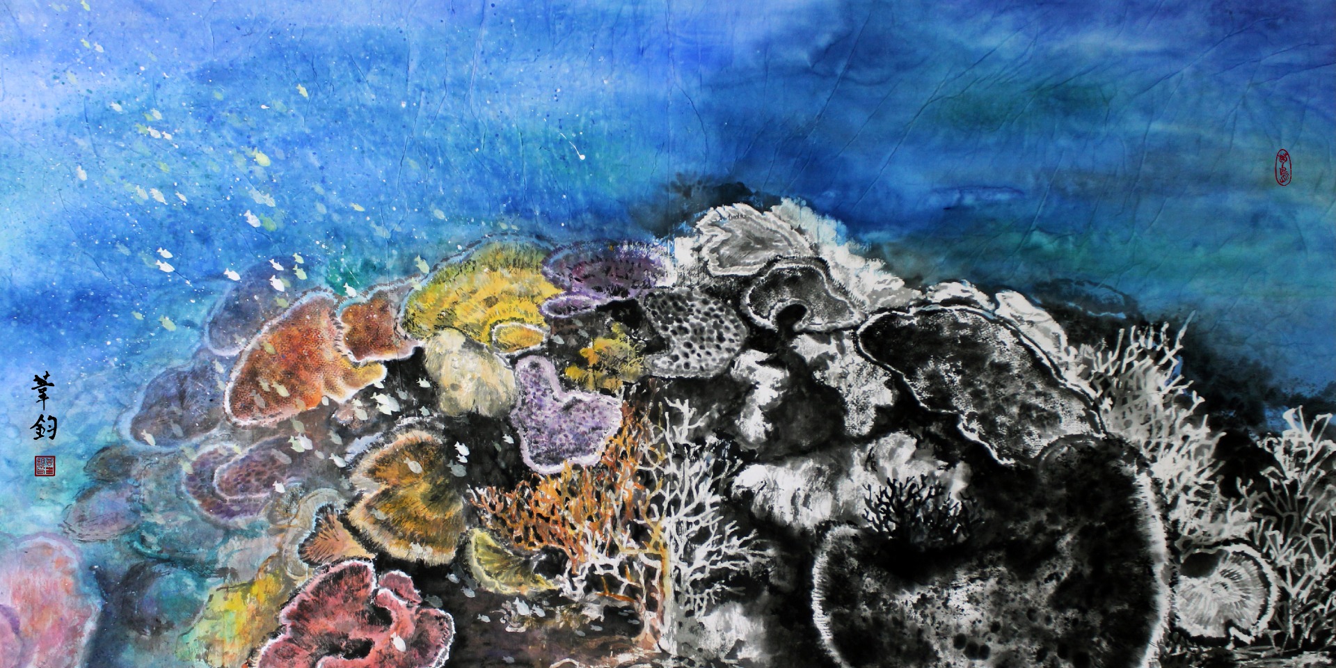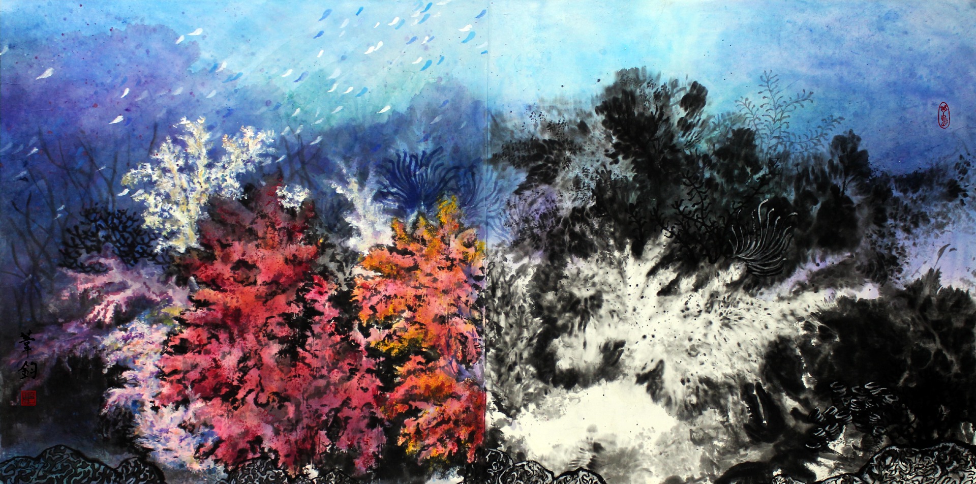 藉由家鄉 - 澎湖為創作題材,以藝術之美的形式展現出海洋之醜陋,將澎湖海洋生態之美麗與哀愁藉由現代水墨畫創作呈現給大家。